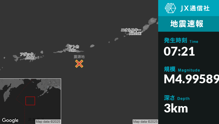 | 震源地 | アラスカのAtkaから南東85kmの地点 |