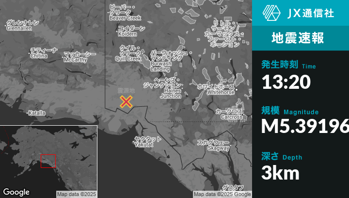 12月07日 13:20頃、アラスカのYakutatから北108kmの地点でM5.391965645091839の地震がありました。