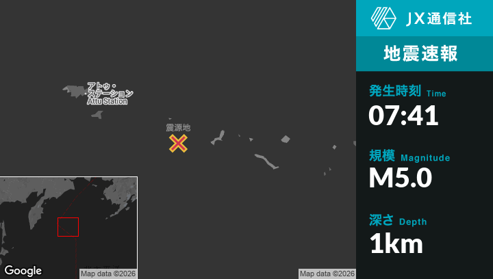 | 震源地 | アラスカのAttu Stationから東南東226kmの地点 |