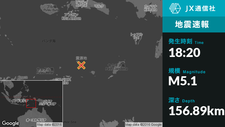 | 震源地 | インドネシアのSaumlakiから西北西277kmの地点 |