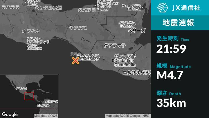 | 震源地 | メキシコのLa Esperanza (El Zapotal)から南南西81kmの地点 |