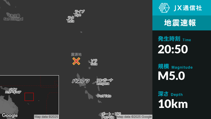 | 震源地 | バヌアツのSolaから西115kmの地点 |