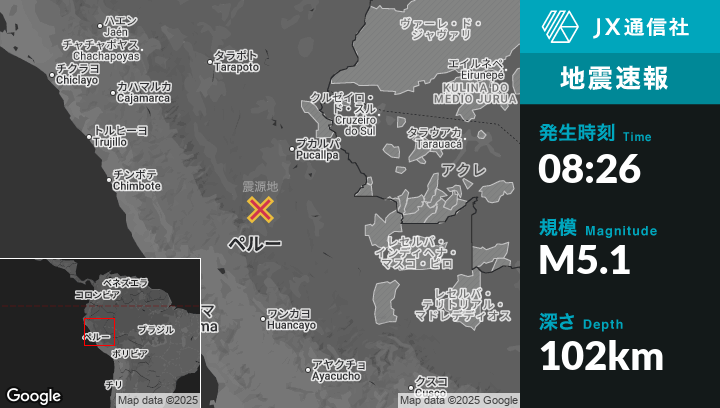 | 震源地 | ペルーのYuyapichisから西33kmの地点 |