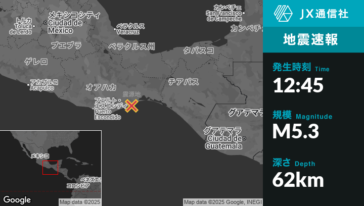 | 震源地 | メキシコのEl Morroから西北西1kmの地点 |