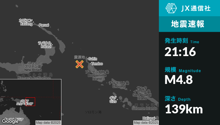 | 震源地 | パプアニューギニアのPangunaから西北西177kmの地点 |