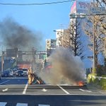 なんか家の周りが騒がしいと思ったら目の前の高速道路で何かが燃えてる 消防車いっぱい来てたわ https://t.co/Us4DMS4AIj
