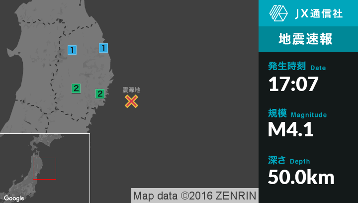震度1岩手県沿岸北部, 岩手県内陸北部, 宮城県中部