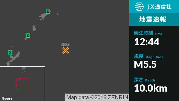 | 震度2 | 鹿児島県十島村, 鹿児島県奄美北部, 鹿児島県奄美南部, 沖縄県本島北部, 沖縄県本島中南部, 沖縄県大東島 |