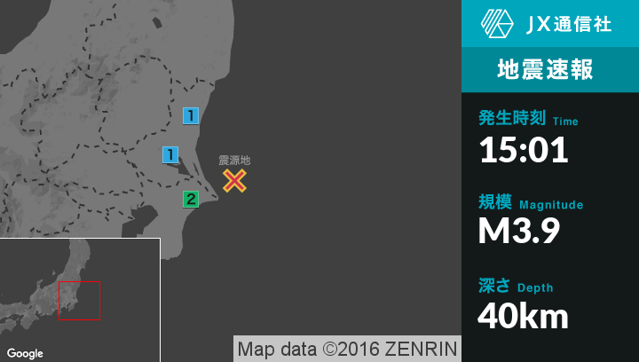| 震度1 | 匝瑳市, 香取市, 多古町, ひたちなか市, 土浦市, 茨城鹿嶋市, 潮来市, 神栖市, 鉾田市 |