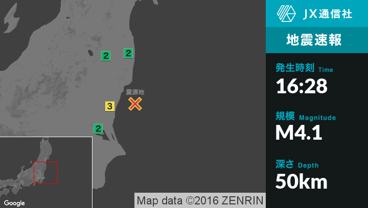 | 震度2 | 高萩市, 北茨城市, 常陸大宮市, 東海村, 桜川市, 鏡石町, 泉崎村, 玉川村, 楢葉町 |