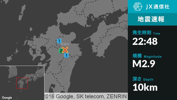 | 震度1 | 阿蘇市, 熊本小国町, 竹田市, 高千穂町 |