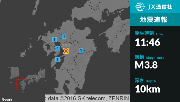 | 震度3 | 熊本西区, 熊本北区, 玉名市 |