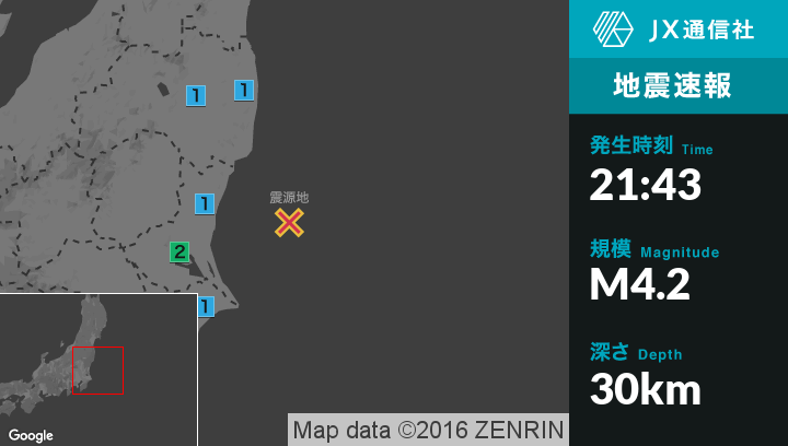 震度1土浦市, 石岡市, 牛久市, 茨城鹿嶋市, 潮来市, かすみがうら市, 行方市, 水戸市, 日立市, 高萩市, 北茨城市, 笠間市, ひたちなか市, 常陸大宮市, 東海村, 郡山市, 白河市, 須賀川市, 田村市, 鏡石町, 天栄村, 泉崎村, 棚倉町, 矢祭町, 玉川村, 浅川町, いわき市, 楢葉町, 浪江町, 香取市