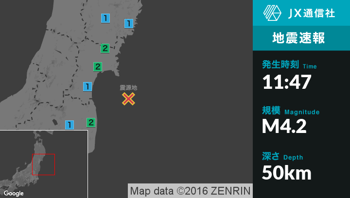 震度1気仙沼市, 涌谷町, 宮城美里町, 仙台青葉区, 塩竈市, 松島町, 七ヶ浜町, 利府町, 大郷町, 大衡村, 名取市, 角田市, 岩沼市, 宮城川崎町, 丸森町, 亘理町, 山元町, 南相馬市, 楢葉町, 富岡町, 川内村, 双葉町, 新地町, 飯舘村, 田村市, 福島伊達市, 川俣町, 大船渡市, 陸前高田市, 釜石市, 住田町, 一関市, 奥州市, 平泉町