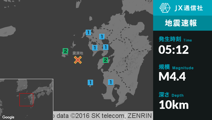 震度1新上五島町, 佐世保市, 平戸市, 松浦市, 長崎市, 諫早市, 西海市, 南島原市, 水俣市, 上天草市, 佐賀市, 武雄市, 上峰町, いちき串木野市, さつま町, 長島町, 薩摩川内市甑島