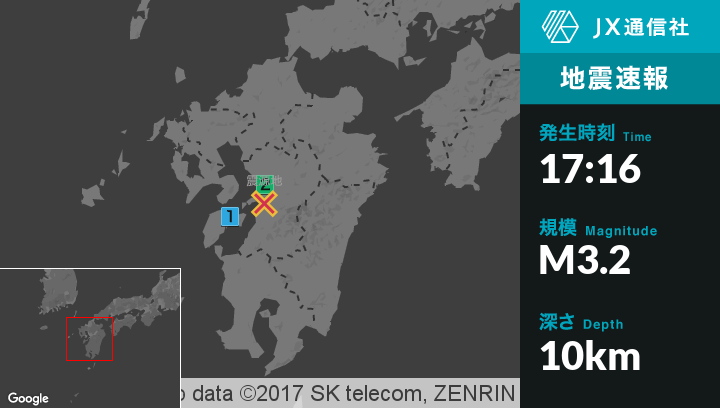 | 震度1 | 宇土市, 宇城市, 上天草市, 芦北町 |