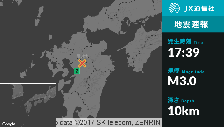 | 震度1 | 熊本北区, 玉名市, 菊池市, 玉東町 |