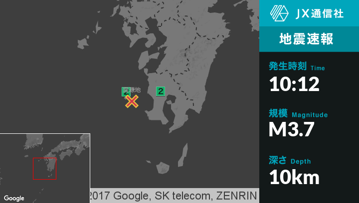 | 震度1 | 枕崎市, 薩摩川内市, 南さつま市 |