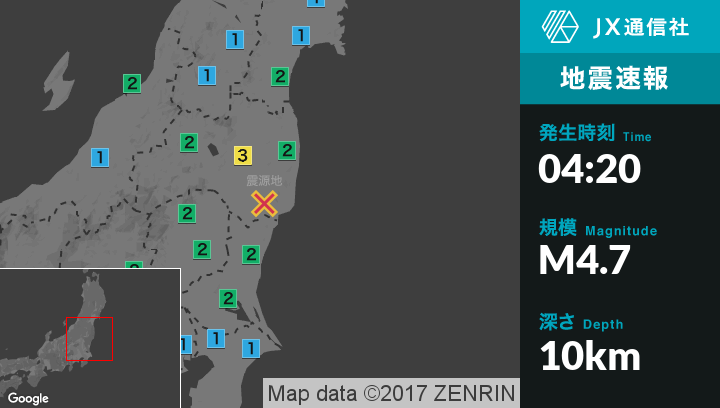 | 震度2 | 福島市, 郡山市, 二本松市, 田村市, 福島伊達市, 本宮市, 桑折町, 国見町, 川俣町, 大玉村, 西郷村, 矢吹町, 矢祭町, 塙町, 平田村, 三春町, 小野町, いわき市, 相馬市, 川内村, 双葉町, 浪江町, 葛尾村, 飯舘村, 会津若松市, 喜多方市, 下郷町, 西会津町, 猪苗代町, 会津坂下町, 湯川村, 柳津町, 会津美里町, 角田市, 岩沼市, 蔵王町, 大河原町, 亘理町, 山元町, 日立市, 常陸太田市, 高萩市, 北茨城市, 笠間市, 常陸大宮市, 那珂市, 小美玉市, 大子町, 土浦市, 石岡市, 常総市, つくば市, 筑西市, 坂東市, かすみがうら市, 鉾田市, 大田原市, 那須町, 宇都宮市, 栃木市, 那須烏山市, 下野市, 市貝町, 芳賀町, 高根沢町, 栃木那珂川町, 桐生市, 大泉町, 邑楽町, 熊谷市, 行田市, 鴻巣市, 春日部市, 阿賀野市, 阿賀町 |