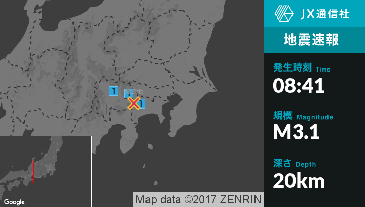 | 震度1 | 山北町, 山梨市, 富士吉田市, 大月市, 富士河口湖町 |
