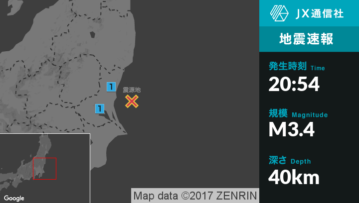 | 震度1 | 水戸市, 笠間市, ひたちなか市, 土浦市, 茨城鹿嶋市, 行方市, 鉾田市 |