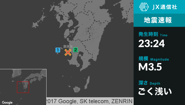 | 震度2 | 薩摩川内市, いちき串木野市 |