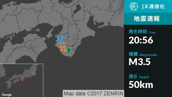 | 震度1 | 白浜町, 御坊市, 紀美野町, 高野町, 湯浅町, 有田川町, 由良町, みなべ町 |