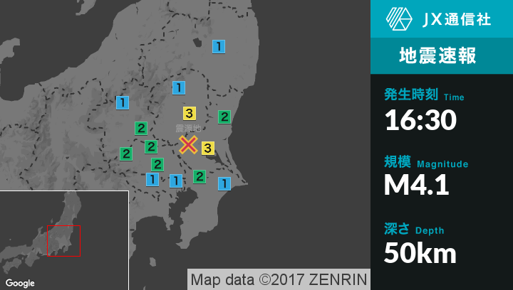 | 震度1 | 茨城古河市, 龍ケ崎市, 常総市, 茨城鹿嶋市, 潮来市, 守谷市, つくばみらい市, 美浦村, 阿見町, 八千代町, 利根町, 常陸太田市, ひたちなか市, 那珂市, 茨城町, 東海村, 大子町, 栃木さくら市, 那須烏山市, 茂木町, 市貝町, 栃木那珂川町, 日光市, 大田原市, 矢板市, 塩谷町, 前橋市, 高崎市, 伊勢崎市, 渋川市, 藤岡市, 富岡市, みどり市, 吉岡町, 神流町, 千代田町, 沼田市, 東吾妻町, 片品村, 行田市, 羽生市, 小川町, 吉見町, 鳩山町, ときがわ町, 東秩父村, 埼玉神川町, 寄居町, さいたま西区, さいたま北区, さいたま大宮区, さいたま見沼区, さいたま中央区, さいたま浦和区, さいたま緑区, さいたま岩槻区, 川越市, 川口市, 上尾市, 戸田市, 桶川市, 蓮田市, 坂戸市, 幸手市, 鶴ヶ島市, 白岡市, 伊奈町, 毛呂山町, 越生町, 川島町, 杉戸町, 秩父市, 横瀬町, 皆野町, 千葉花見川区, 千葉稲毛区, 千葉美浜区, 習志野市, 柏市, 八千代市, 我孫子市, 鎌ケ谷市, 浦安市, 印西市, 白井市, 富里市, 酒々井町, 栄町, 香取市, 山武市, 神崎町, 多古町, 芝山町, 白河市, 田村市, 棚倉町, 玉川村, 浅川町, 東京千代田区, 東京新宿区, 東京文京区, 東京中野区, 東京江戸川区, 調布市, 東大和市 |