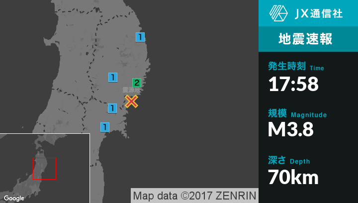 | 地震の規模 | マグニチュード 3.8 |