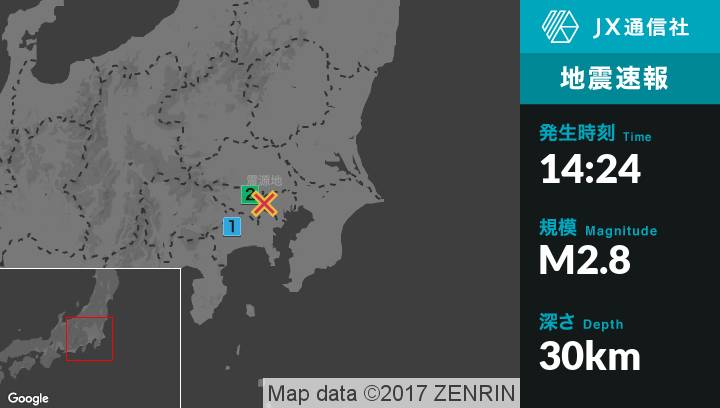 | 震度1 | 町田市, 西東京市, 相模原緑区, 相模原中央区 |