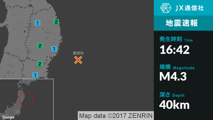 | 震度2 | 山田町, 一関市, 気仙沼市 |