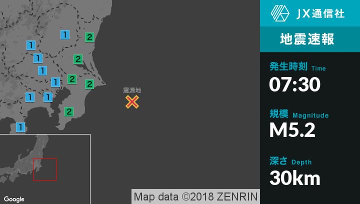 | 震度1 | 笠間市, 土浦市, 石岡市, 龍ケ崎市, 取手市, つくば市, 茨城鹿嶋市, 筑西市, 坂東市, 行方市, 鉾田市, 美浦村, 河内町, 利根町, 茂原市, 神崎町, 芝山町, 長柄町, 千葉花見川区, 千葉若葉区, 千葉緑区, 千葉美浜区, 松戸市, 野田市, 成田市, 千葉佐倉市, 柏市, 浦安市, 八街市, 館山市, 木更津市, 勝浦市, 鴨川市, 君津市, 南房総市, 大多喜町, 鋸南町, 真岡市, 益子町, 前橋市, 加須市, 鴻巣市, 久喜市, さいたま中央区, さいたま浦和区, さいたま南区, さいたま緑区, 川口市, 春日部市, 草加市, 蕨市, 戸田市, 入間市, 志木市, 八潮市, 富士見市, 三郷市, 吉川市, 白岡市, 宮代町, 杉戸町, 東京千代田区, 東京中央区, 東京墨田区, 東京江東区, 東京品川区, 東京大田区, 東京北区, 東京荒川区, 東京板橋区, 東京足立区, 東京葛飾区, 東京江戸川区, 横浜神奈川区, 横浜中区, 川崎川崎区, 川崎幸区, 川崎宮前区, 横須賀市, 茅ヶ崎市, 三浦市, 二宮町, 湯河原町, 伊豆市, 伊豆の国市, 東伊豆町, 河津町 |