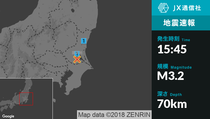 | 震度1 | 水戸市, 笠間市, 小美玉市, 城里町, 土浦市, 石岡市, 取手市, 茨城鹿嶋市, 筑西市, 稲敷市, かすみがうら市, 桜川市 |