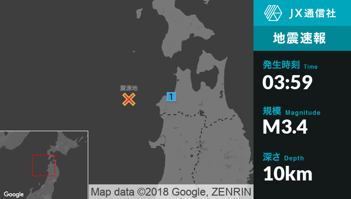 3月9日 3時59分頃発生した地震(最大震度1)