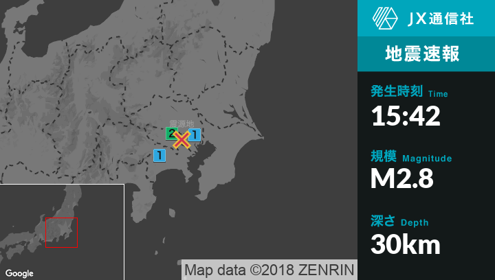 | 震度1 | 東京府中市, 町田市, 日野市, 東村山市, 多摩市, 西東京市, 東京練馬区, 相模原緑区, 相模原中央区, 相模原南区 |