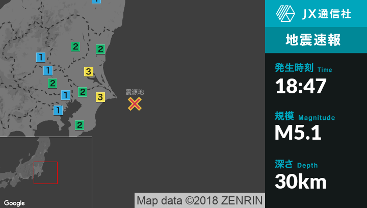 | 震度1 | 土浦市, 石岡市, 牛久市, つくば市, 坂東市, 桜川市, つくばみらい市, 美浦村, 阿見町, 利根町, 水戸市, 日立市, 常陸大宮市, 那珂市, 茨城町, 大洗町, 東海村, 一宮町, 長柄町, 千葉花見川区, 千葉稲毛区, 千葉緑区, 松戸市, 野田市, 柏市, 八千代市, 我孫子市, 鎌ケ谷市, 浦安市, 四街道市, 白井市, 酒々井町, 館山市, 木更津市, 勝浦市, 鴨川市, 君津市, 宇都宮市, 真岡市, 那須烏山市, 下野市, 益子町, さいたま北区, さいたま大宮区, さいたま見沼区, さいたま中央区, さいたま桜区, さいたま浦和区, さいたま南区, 川口市, 草加市, 越谷市, 蕨市, 戸田市, 志木市, 和光市, 八潮市, 富士見市, 三郷市, 幸手市, 白岡市, 川島町, 松伏町, 熊谷市, 加須市, 鴻巣市, 久喜市, 丸森町, 郡山市, 須賀川市, 玉川村, 渋川市, 東京千代田区, 東京中央区, 東京台東区, 東京墨田区, 東京江東区, 東京品川区, 東京大田区, 東京中野区, 東京北区, 東京荒川区, 東京板橋区, 東京足立区, 東京葛飾区, 東京江戸川区, 横浜中区, 川崎川崎区, 川崎宮前区 |