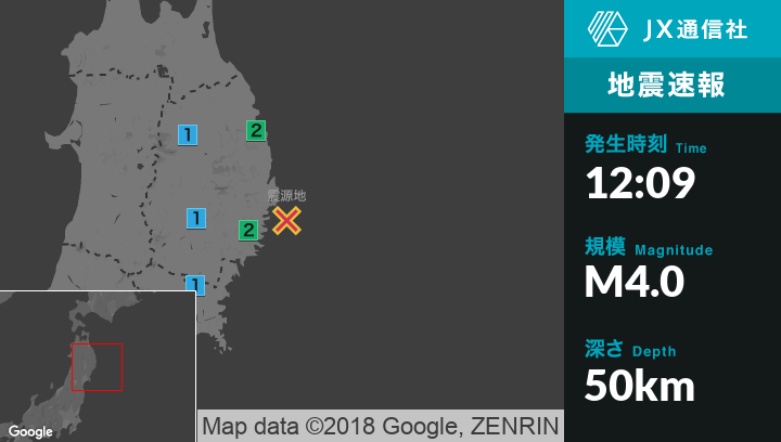 | 震度1 | 宮古市, 陸前高田市, 住田町, 大槌町, 盛岡市, 北上市, 遠野市, 一関市, 気仙沼市, 石巻市 |