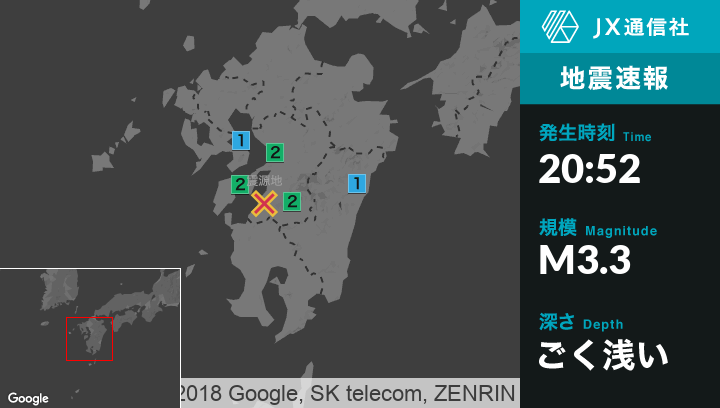| 震度2 | 八代市, 球磨村, 芦北町 |