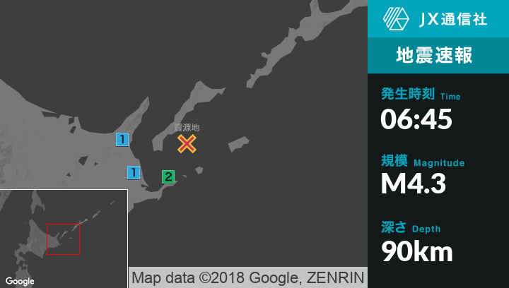 | 震度1 | 十勝大樹町, 浜中町, 標茶町, 標津町, 別海町 |