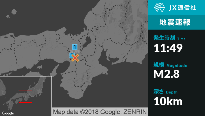 | 震度1 | 京都伏見区, 京都西京区, 八幡市, 大山崎町, 久御山町, 枚方市, 交野市 |