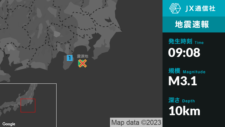 9月23日 9時08分頃発生した地震(最大震度2)