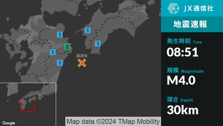 1月1日 8時51分頃発生した地震(最大震度2)