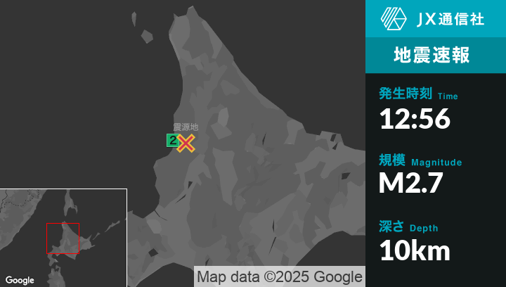 1月1日 12時56分頃発生した地震(最大震度2)