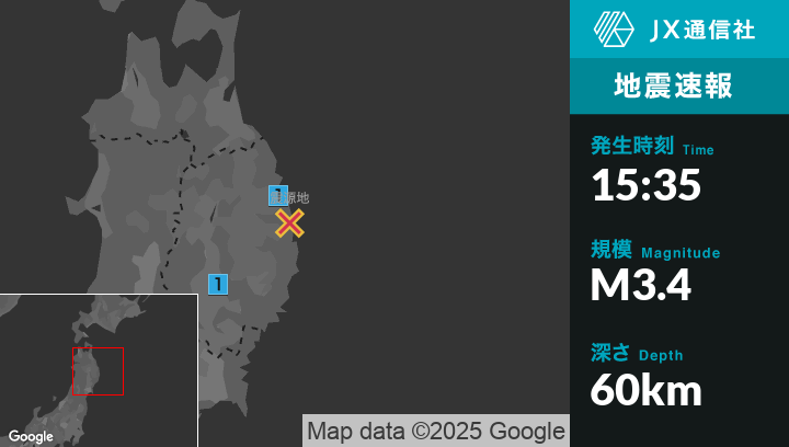 1月1日 15時35分頃発生した地震(最大震度1)