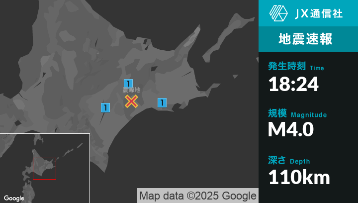 1月15日 18時24分頃発生した地震(最大震度1)