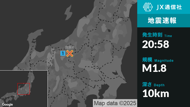 1月20日 20時58分頃発生した地震(最大震度1)