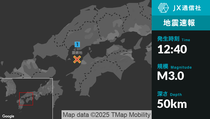 6月7日 12時40分頃発生した地震(最大震度1)