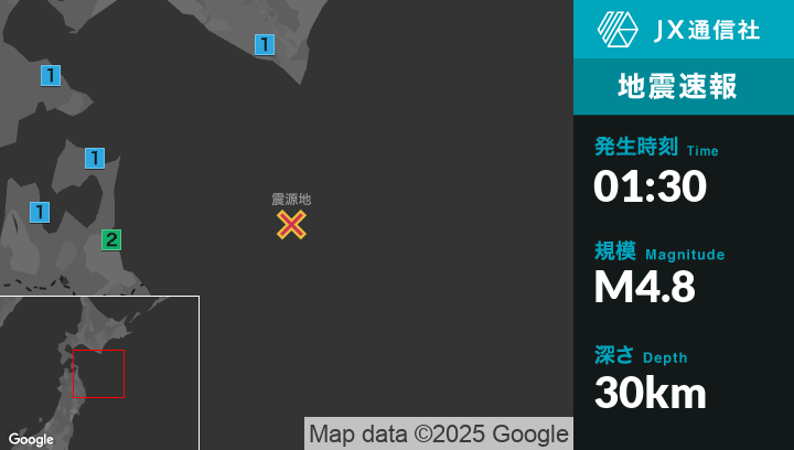 1月1日 1時30分頃発生した地震(最大震度2)
