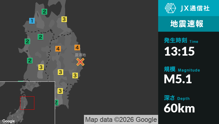 | 震源地 | 岩手県沿岸北部 |