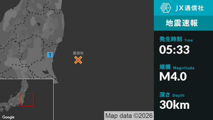 1月19日 5時33分頃発生した地震(最大震度1)